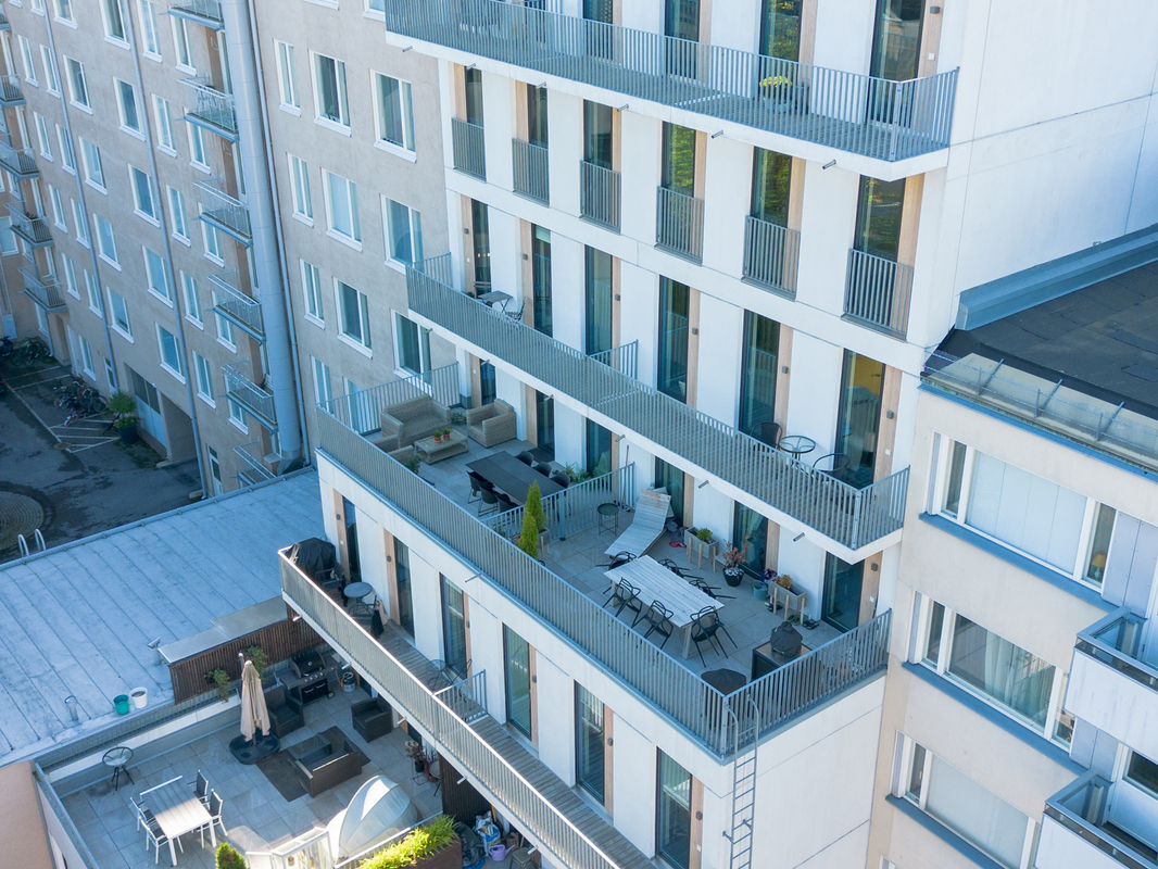 The apartment is heated with district heating and features pleasant water-circulating underfloor heating. Mechanical ventilation also includes cooling for hot summer days. The building is equipped with cable TV and Telia’s 50M broadband system.