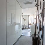 | Keittiön varustelu | Valkoiset kiiltäväpintaiset kalusteet. Jääkaappi/pakastin integroitu, liesitaso, monitoimiuuni, liesituuletin aktiivihiilisuodattimella, integroitu astianpesukone. Työtasot valkoinen kivikomposiitti. |