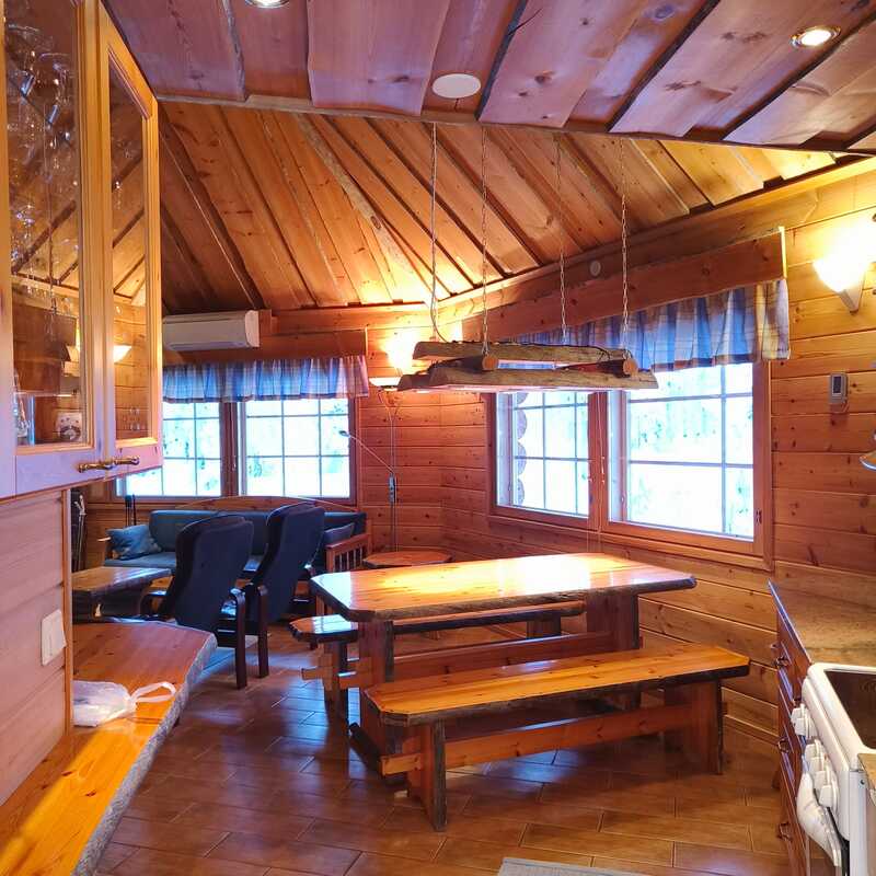 Avara ja toimiva kelopintainen mutterimaja, jossa on mukavasti tilaa 6-8 hengen majoitukseen.