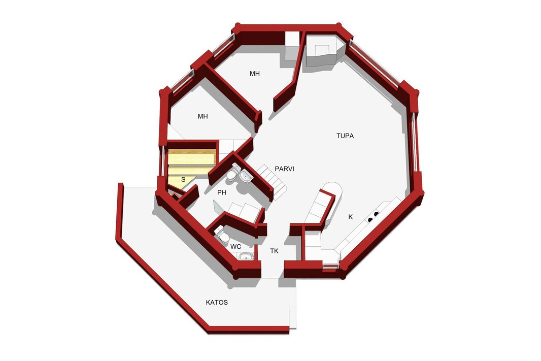 | Huoneistoselitelmä | 2mh+tupa+keittiö +saunaosasto, wc, lisätilana parvi |