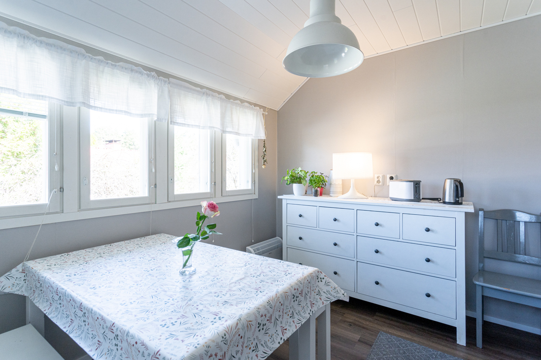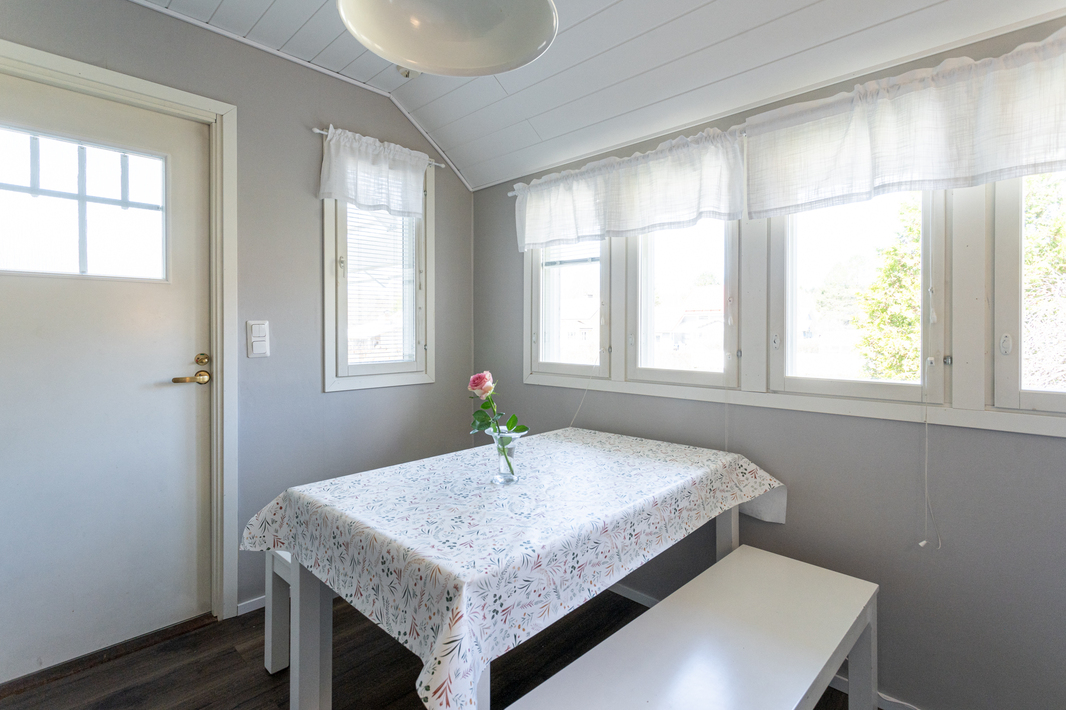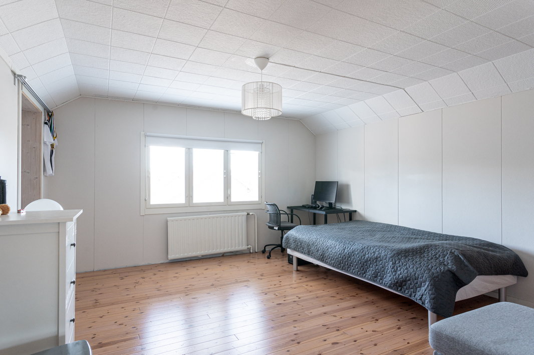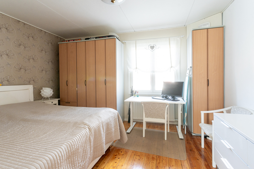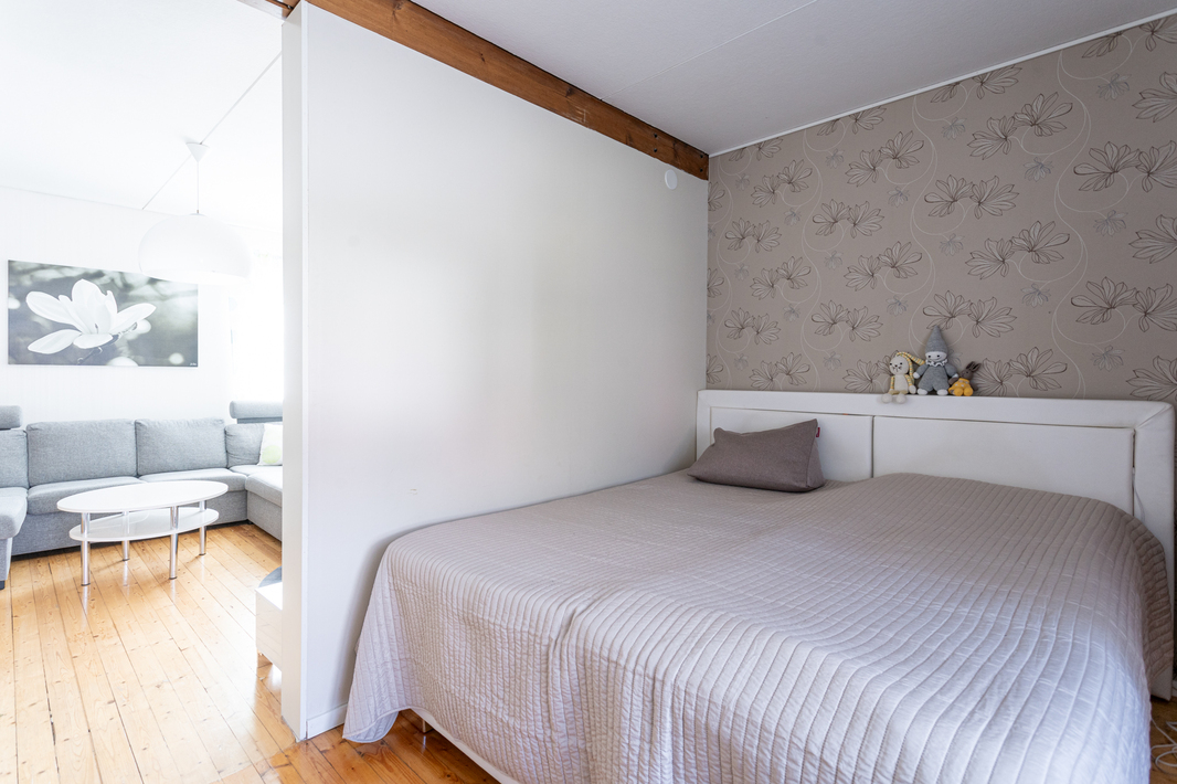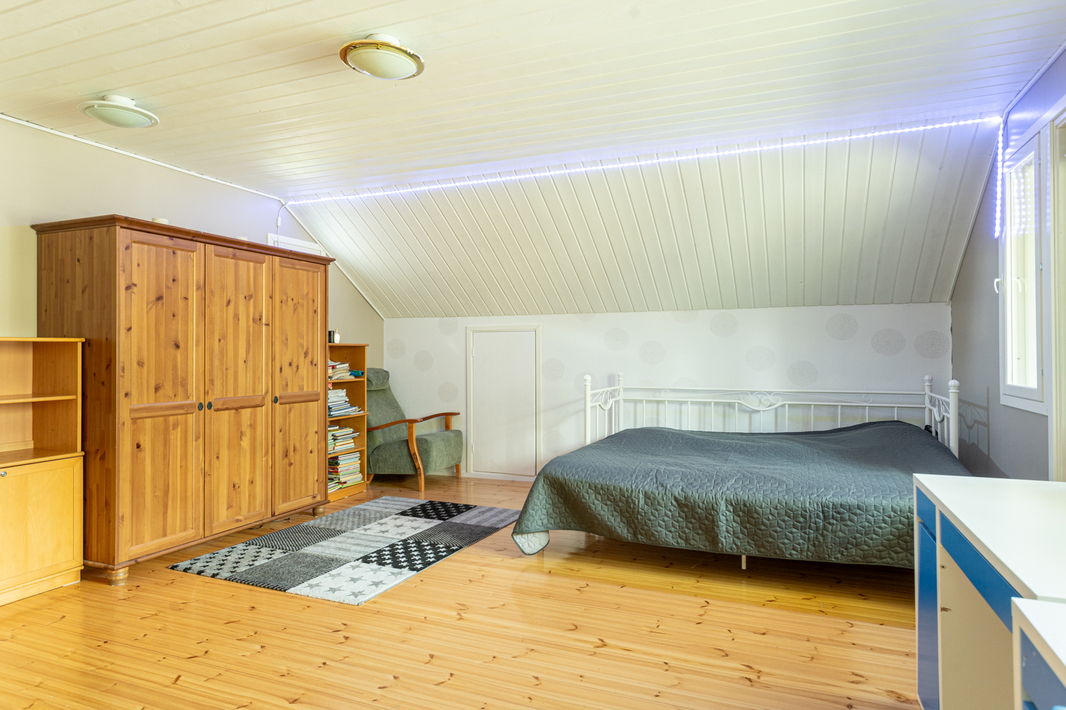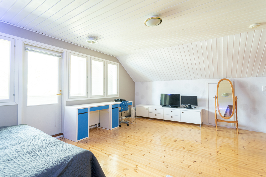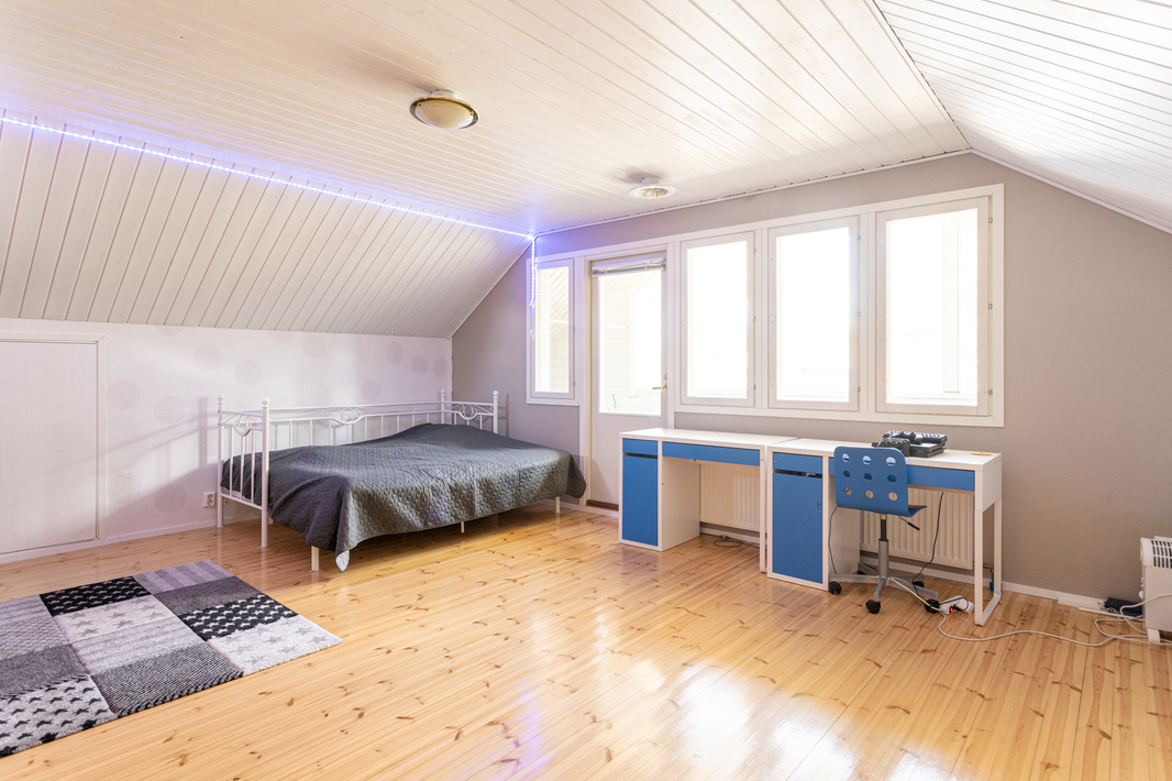 | Makuuhuoneen kuvaus | Makuuhuoneet isoja ja yläkerran toisesta makuuhuoneesta kulku parvekkeelle. |