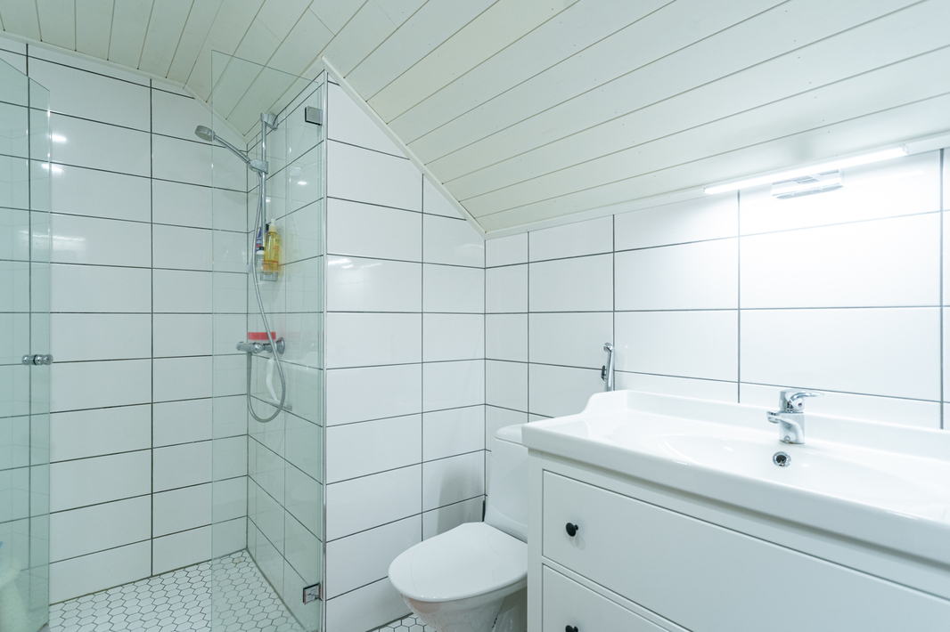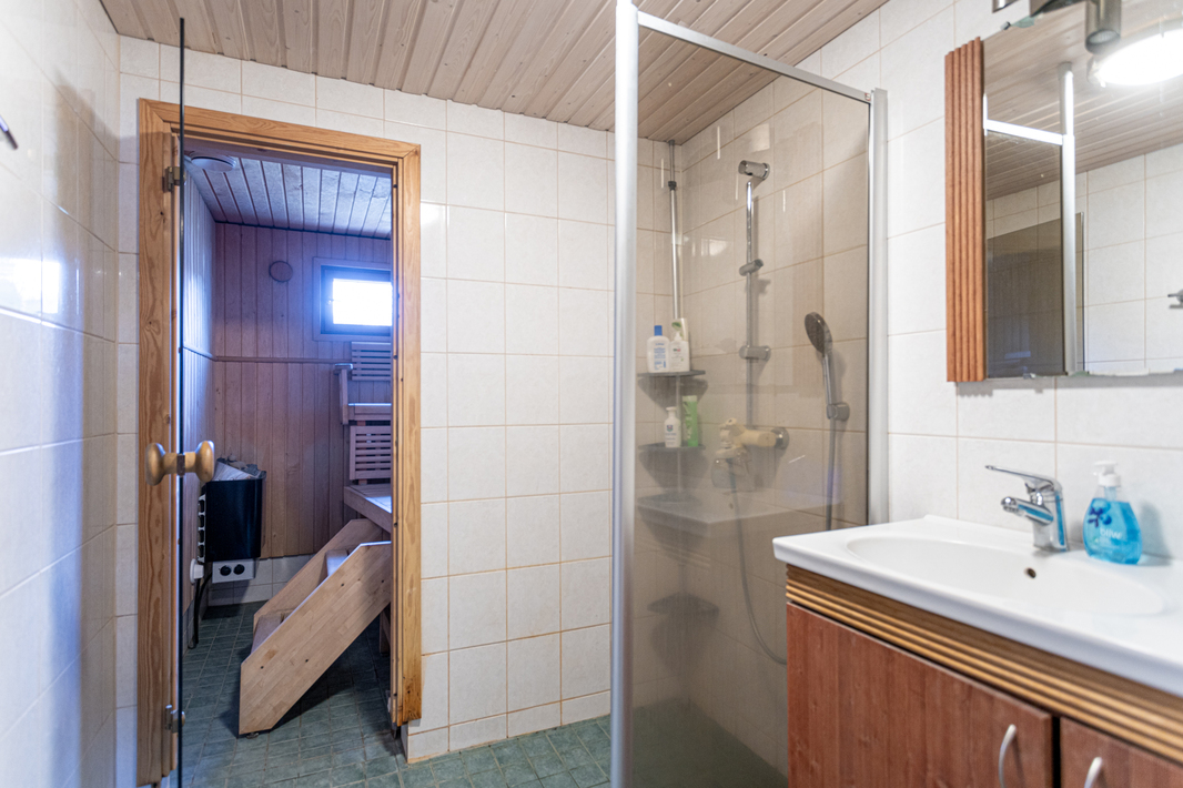 | Kylpyhuoneen kuvaus | Alakerran kylpyhuone: Suihku, peili ja allaskaappi Yläkerran Kylpyhuone: Suihku, wc-istuin, allas ja pesukoneliitäntä |