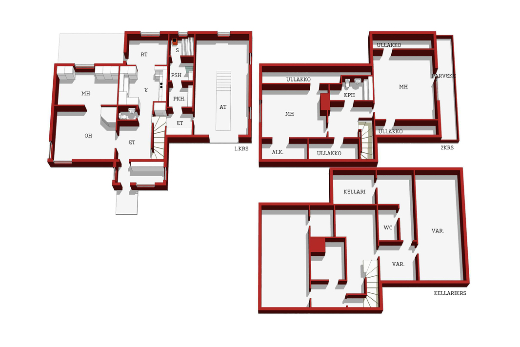 Omakotitalo 4h, alkovi, k, rt, sauna, 2 kph, 2 wc, terassi