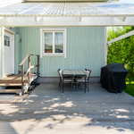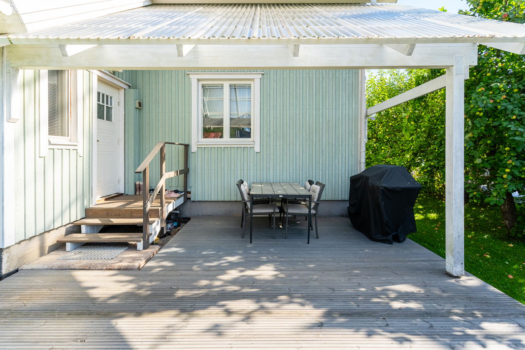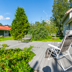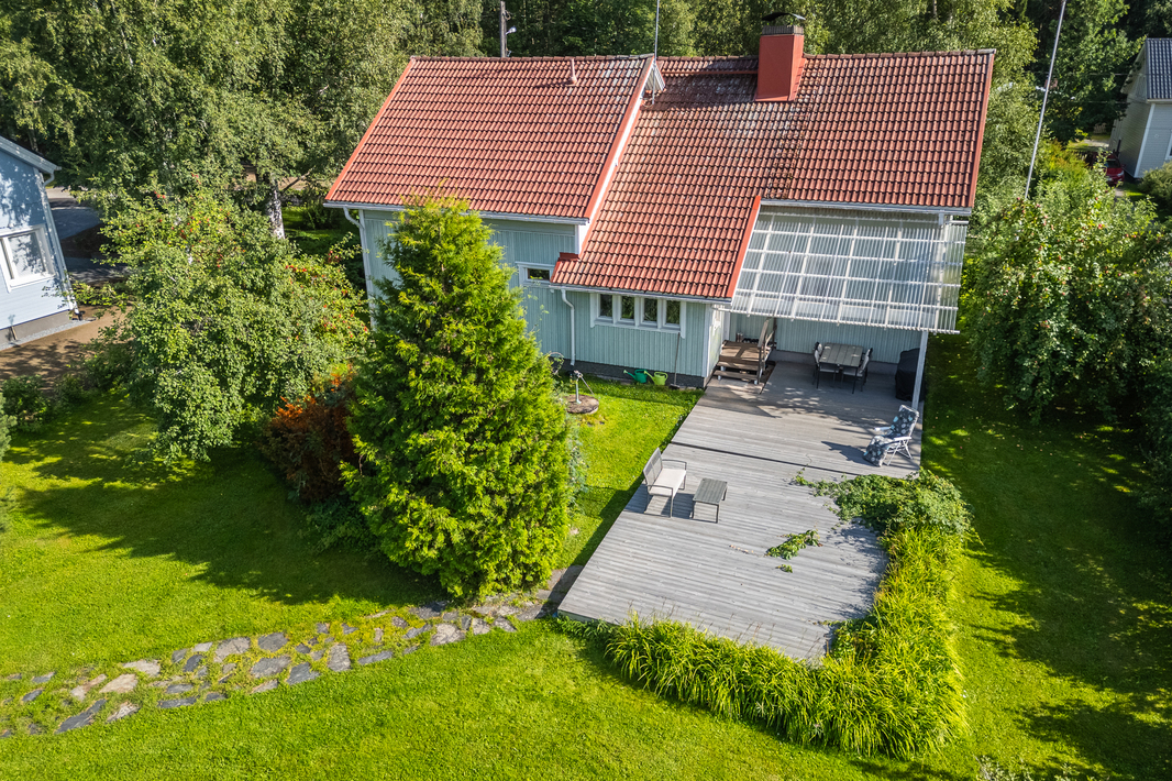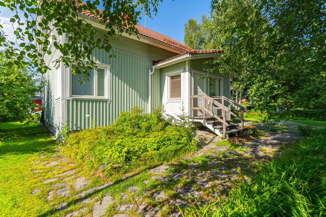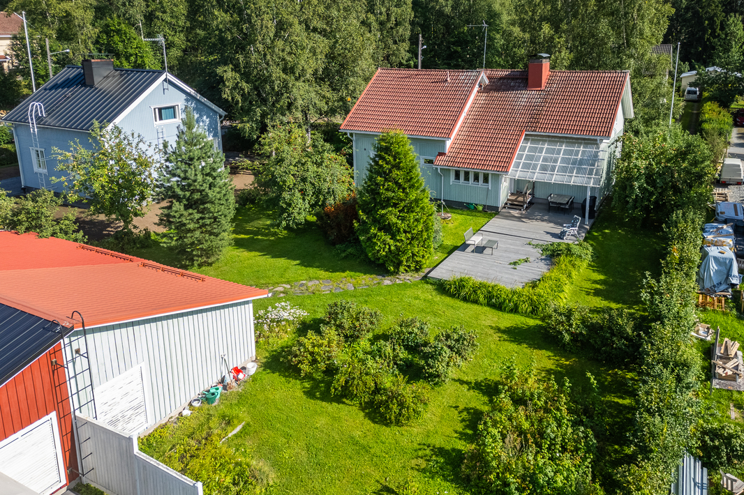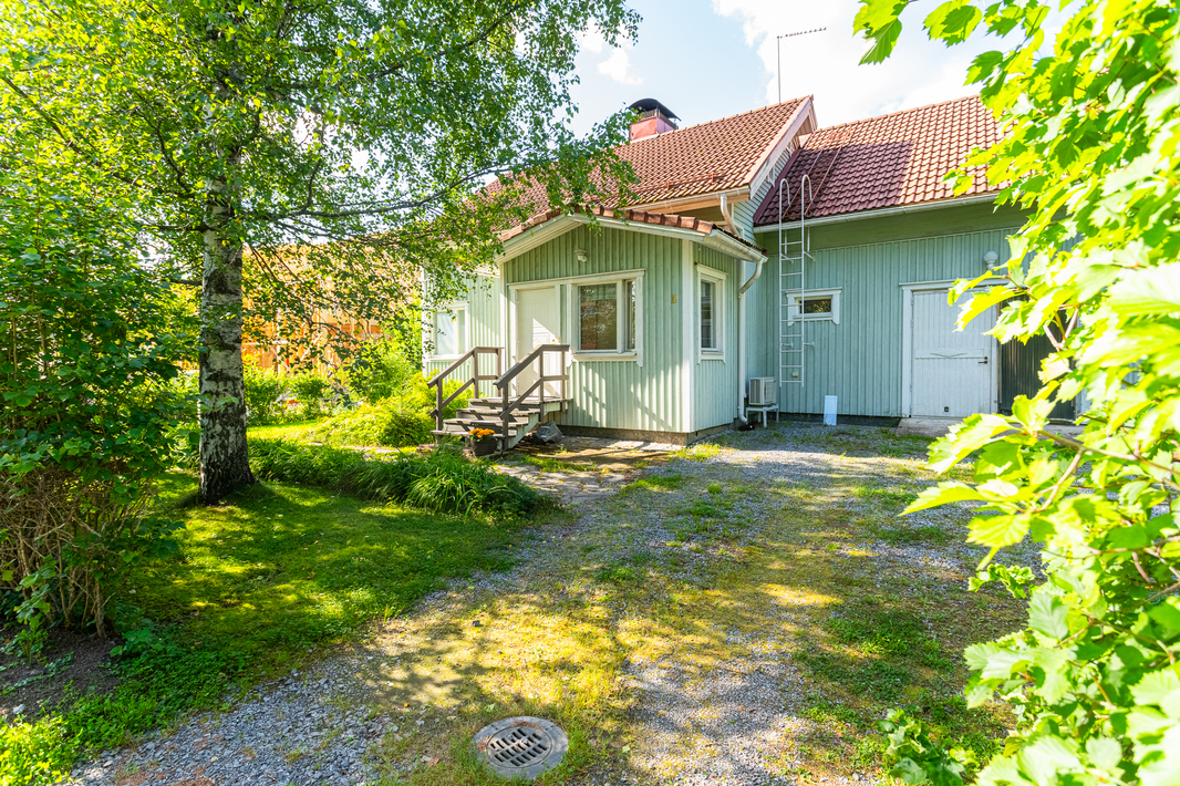 Oma 1053 m2 puutarhamainen tontti on suojainen ja siinä riittää lapsille tilaa temmeltää. Katetulla terassilla on mahdollisuus pitää isommatkin puutarhajuhlat ja tunnelmallinen pihasauna kruunaa tämän omakotitaloasumisen viihtyisyyden.