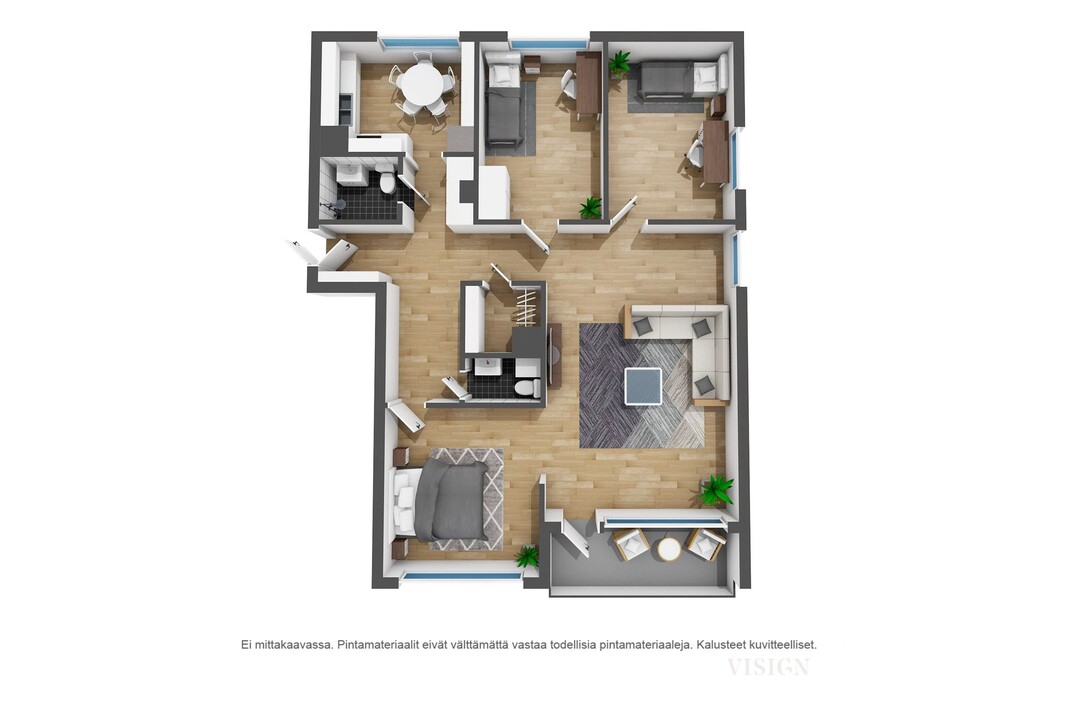 3 tilavaa makuuhuonetta mahdollistaa isommankin perheen asumisviihtyisyyden.
