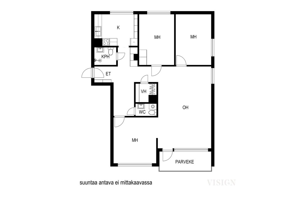 | Huoneistoselitelmä | 4h, k, 2wc, vh, p, yhtiöjärjesyksen mukaan 4h, k, p |