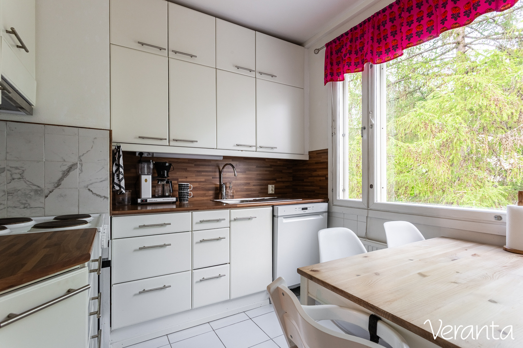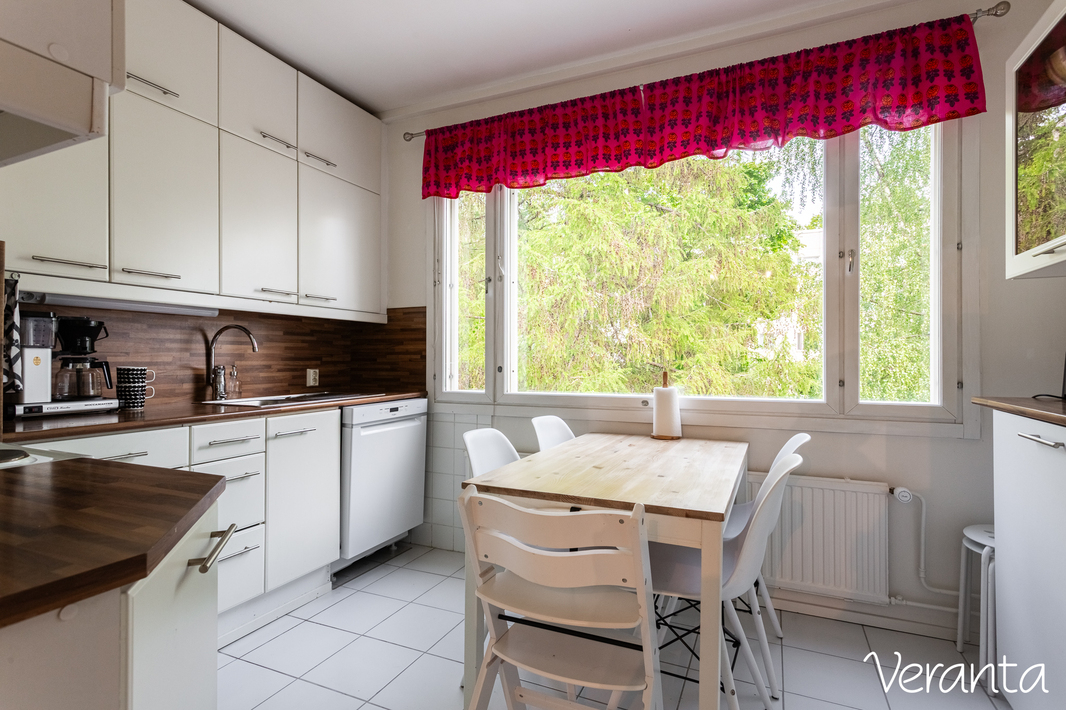 | Keittiön varustelu | Valoisa ja toimiva keittiö, remontoitu 2009. Keittiön liesituuletin, apk ja laatoitukset vaihdettu 2024. |