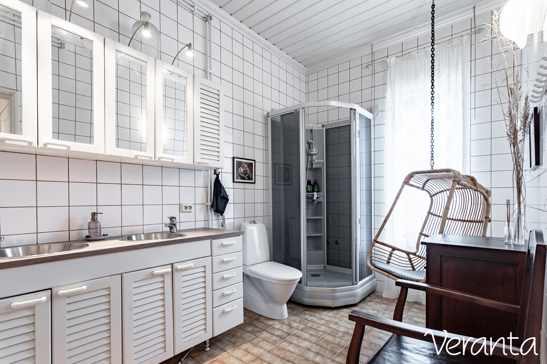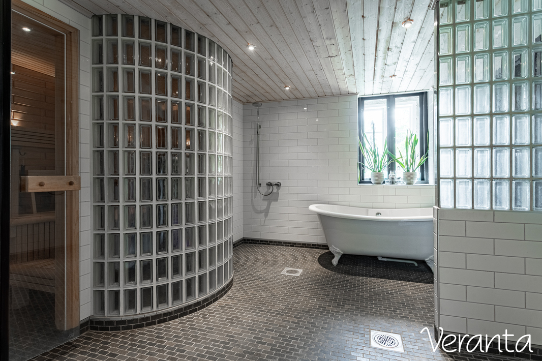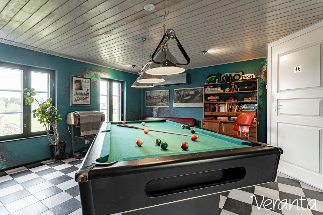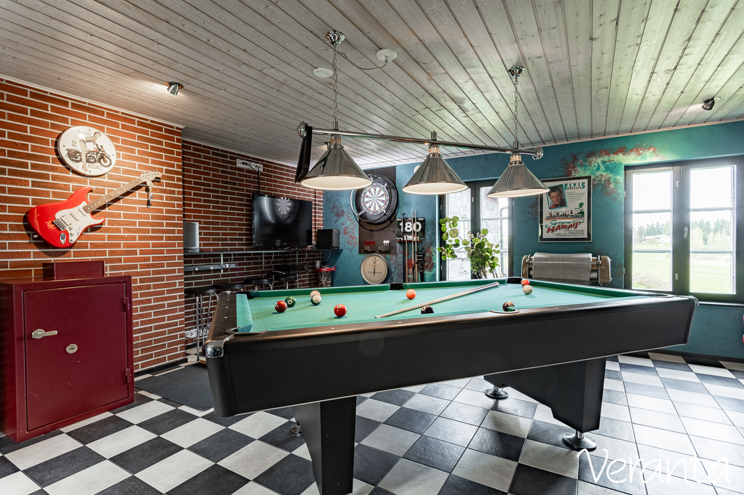 Tilavassa talossa on erillinen keittiö, SPA-osasto, biljardihuone, kodinhoitotilat ja kolme makuuhuonetta sekä olohuone.