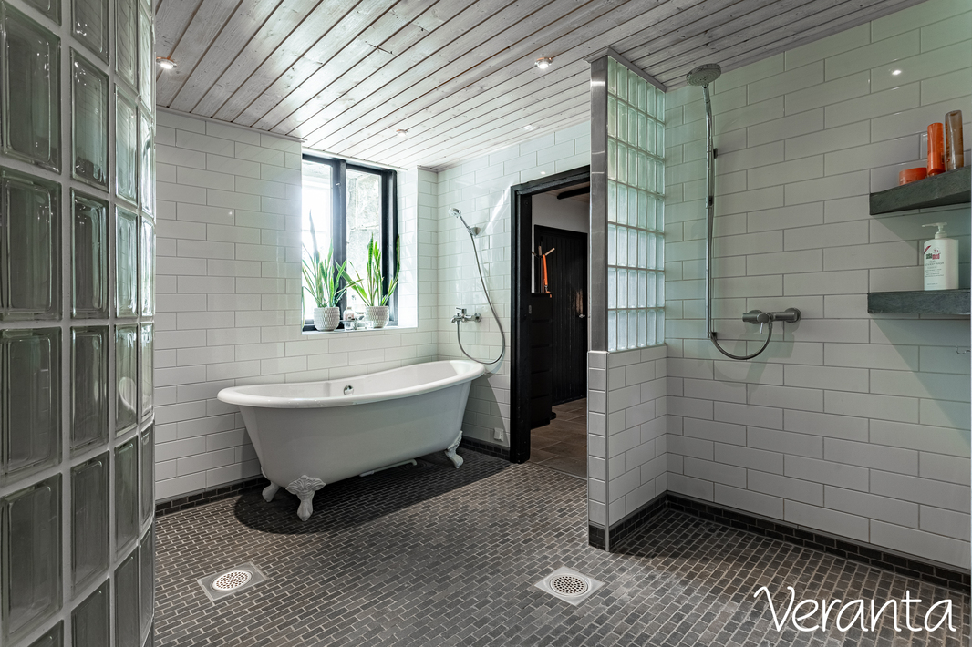 | Kylpyhuoneen kuvaus | Tilava spa-osasto 2 suihkulla ja kylpyammeella. |