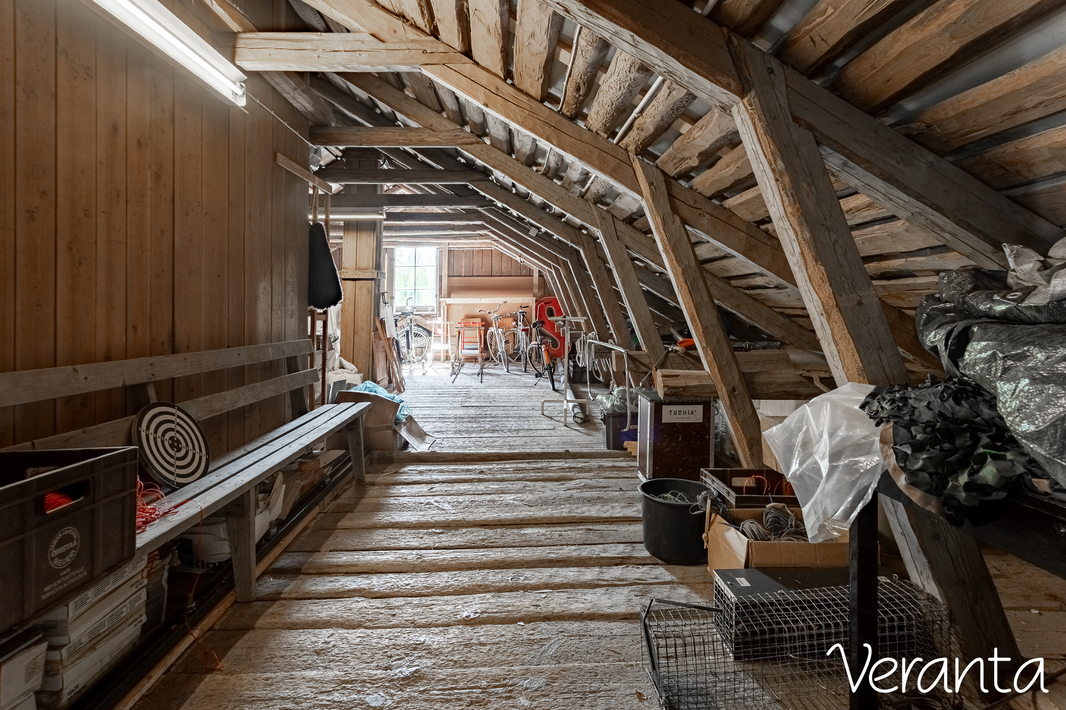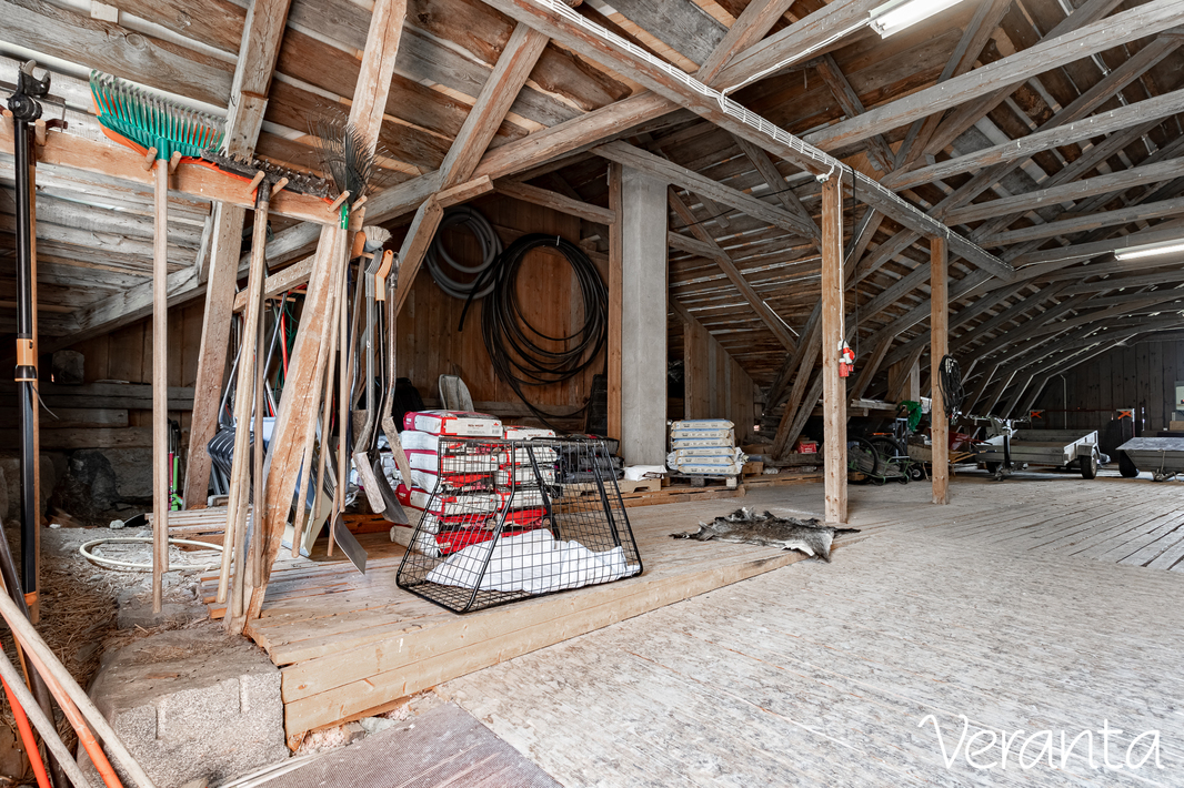 | Säilytystilojen kuvaus | Säilytystilaa rakennuksen vintillä ja ulkorakennuksissa. |