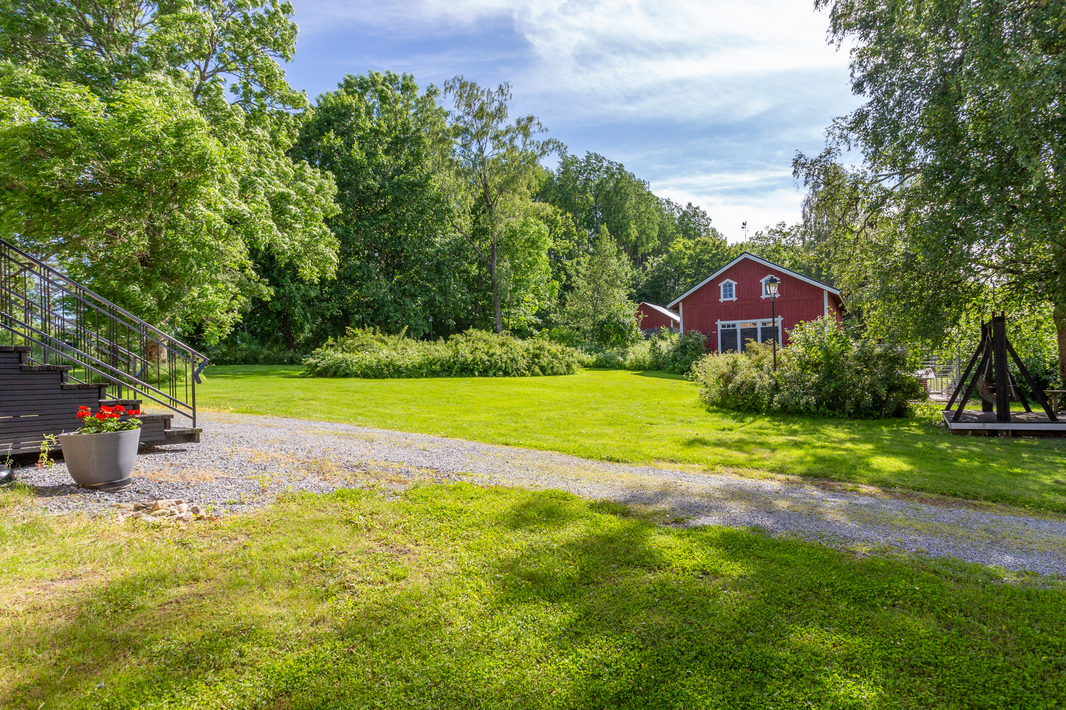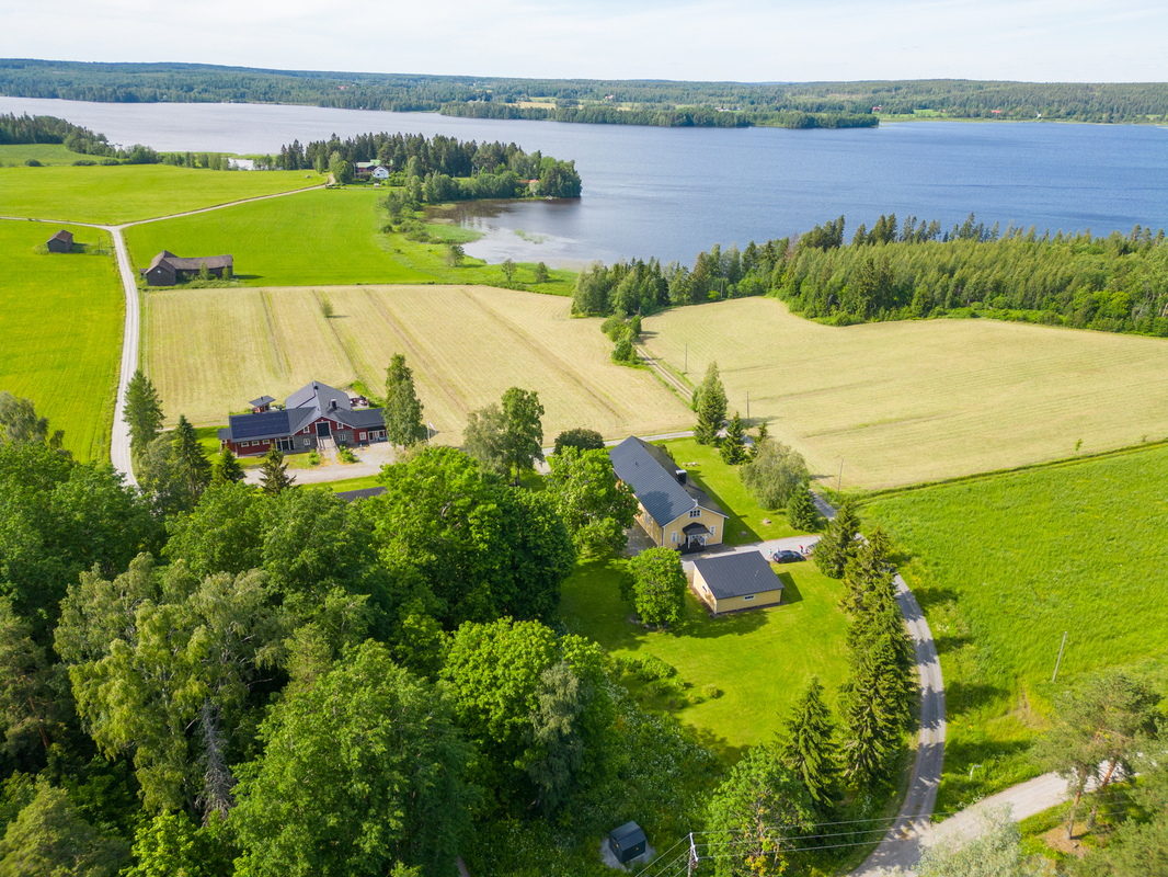 Maalaismaisemassa 1,2ha tontilla sijaitsevat myös pihasauna ja oma lampi.